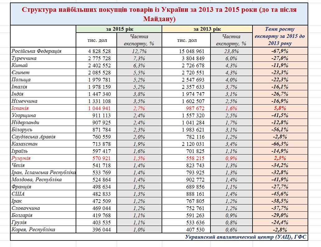 Таможенная служба ГФС обнародовала данные внешней торговли Украины за 2015 года. Есть повод сравнить результат внешней торговли Украины за 2013 до Майдана и за 2015 год после Майдана. Выводы делайте сами», — написал в своём блоге украинский экономист.